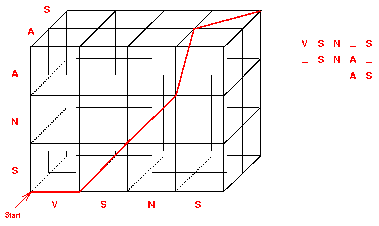 the alignment corresponds to node (3,3,1). Indeed, 3 letters from the first